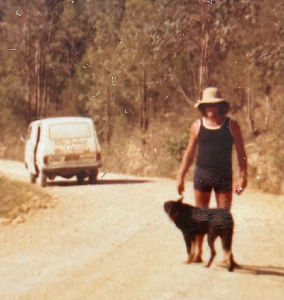Potato Point camping area on the NSW south coast was pretty isolated and rough in those days, with the only facility a drop toilet, and cold showers. We slept in the van, used a canvas lean-to for shade, and when we went off fishing or surfing, dog would stay at the tent, chained by a long lead to a spare tyre.
